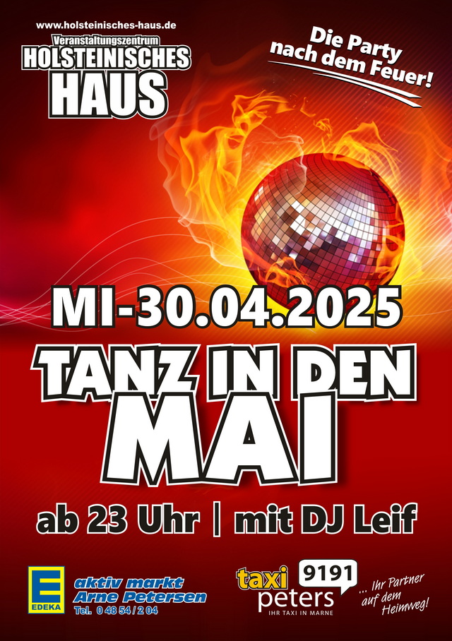 Wir tanzen in den Mai... Ist das Feuer runtergebrannt, geht die Party bei uns weiter. Ab 23 Uhr Doors open Mit DJ Leif